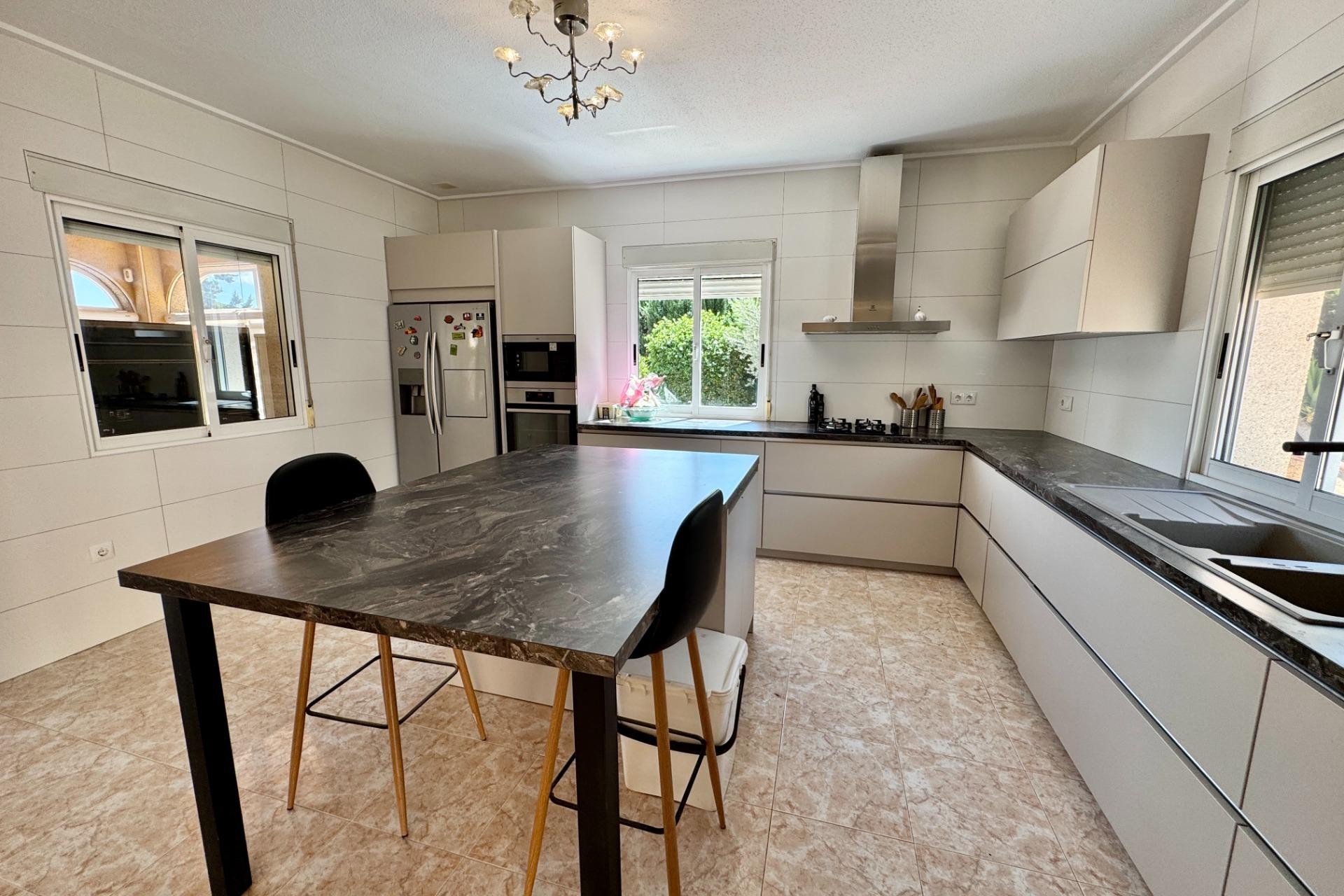 Beautiful Villa with Independent Studio in Dolores. Situated in a highly sought-after area of Dolores, just a 15-minute walk from the town centre, this charming villa offers space, privacy, and greenery on a generous 2,000 m² walled plot. The property also includes a separate studio with lounge/dining/bedroom area, kitchen, and private terrace overlooking the garden and pool – ideal for guests, family, or rental income. 🏠 Main House : 2 double bedrooms with fitted wardrobes (master with walk-in wardrobe), 2 full bathrooms. Bright, spacious lounge-diner with fireplace. Brand-new Schmidt fully fitted kitchen .Large glazed veranda with views of the garden & pool. 🌿 Outdoors & Extras 2,000 m² landscaped plot with palms, fruit trees & Mediterranean plants Large swimming pool with jacuzzi Summer kitchen, bar & BBQ area – perfect for entertaining Covered terraces & multiple storerooms Septic tank compliant with EU regulations 16 solar panels for energy efficiency Verisure alarm system & air conditioning Parking for up to 4 cars with electric gate 👉 A property that combines comfort, charm, and energy efficiency – perfect as a main residence or a holiday retreat!