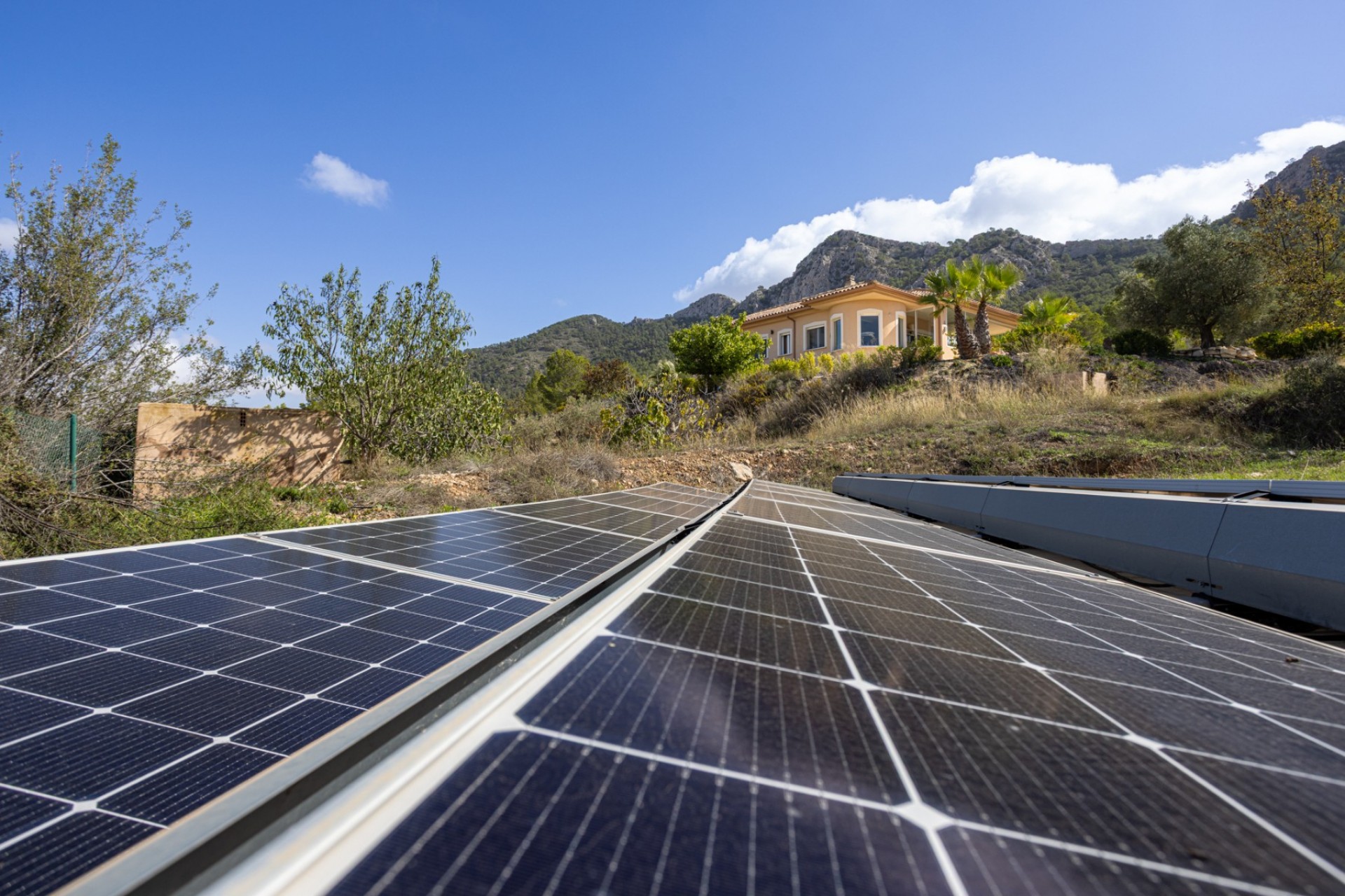 We present this beautiful detached villa, situated in a unique natural setting in La Zarza, where the tranquility of the countryside is combined with all modern amenities. Ideal as a permanent residence, holiday home, or even as a rural investment. Layout and interior spaces With a built area of 144 m², this charming home offers a functional and bright layout. The house features three spacious bedrooms (one of which has been converted into a garage, but is easily convertible), all with abundant natural light, and two carefully finished bathrooms, as well as a guest toilet for added convenience. The open-plan kitchen, fully equipped with appliances, flows seamlessly into the living-dining room, creating an open and welcoming space, ideal for enjoying with family or friends. The living room features a cozy wood-burning stove, perfect for winter evenings. The house also has central heating (propane) and air conditioning for optimal comfort year-round. One of the most special features of this property is the underfloor heating throughout and the use of a unique water system connected to the gas central heating system. The house is fully furnished and equipped, move-in ready, and features built-in wardrobes for extra storage. The master bedroom boasts a fantastic walk-in closet and an en-suite bathroom. A real eye-catcher in this bathroom is the jacuzzi with shower. The walk-in closet can even be converted into an additional small bedroom if desired. The house has 18 electric solar panels (On-Grid) for the house and another 6 panels for the solar boiler (house hot water, swimming pool heating). Exterior: Nature, privacy and outdoor recreation The true luxury of this property lies outdoors. Situated on an impressive 13,400 m² plot, surrounded by nature, it offers complete privacy and spectacular open views of the landscape. The meticulously maintained garden leads to a fantastic private swimming pool, ideal for cooling off in the summer, but also heated for cooler winter days. It also features a barbecue area, a covered veranda perfect for al fresco dining, a large sun terrace, and a solarium for enjoying unforgettable sunsets. There is also a closed garage and a private parking space on the plot. Location and accessibility Although the villa offers complete tranquility, it is very easily accessible: Recreation areas, restaurants and amenities are just a 10-minute drive away. Prestigious golf courses are 40 minutes away. Both the Mediterranean beaches and the nearest airports are within 60 minutes, making it an excellent choice for regular day trips or international visits. The south-west facing location guarantees sunshine and spectacular natural light for most of the day. Included extras Air conditioning Electric roller shutters (persianas) throughout the house Central heating (propane gas, 1000 liter tank) Water tank (21,000 liters) Fireplace (for wood) Solar panels (as support, the house is also connected to the electricity grid) Furnished Appliances (main kitchen appliances) Barbecue and outdoor seating area All automatic gates are operated with GSM WiFi Private swimming pool (heated by solar boiler) Garage and parking space Veranda, terrace and solarium Large private garden